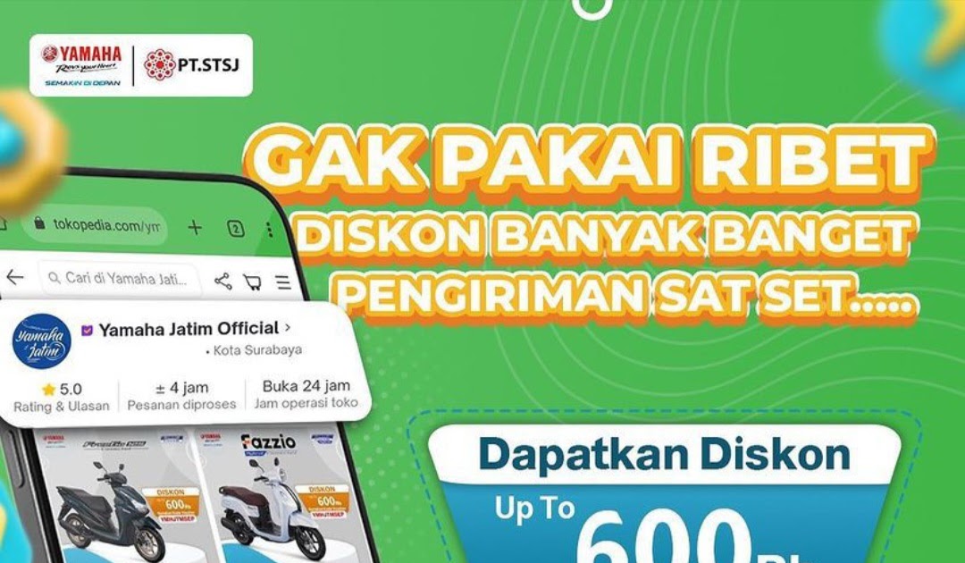 * Yamaha STSJ menghadirkan kemudahan pembelian sepeda motor melalui aplikasi Tokopedia. Ada juga diskon menarik, layanan same day delivery, dan gratis ongkir.